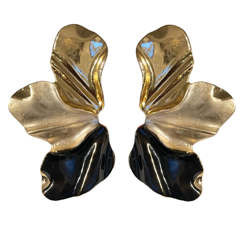 3LEAVES BLACK WHITE GOLD BRONZE EARRINGS